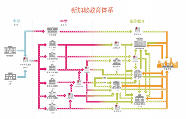 新加坡政府中小学采取的是英联邦的GCE(General Certificate of Education)教育系统,比较偏向传统应试教育,教育基础在亚洲处于领先地位,新加坡政府学校是由新加坡教育部(MOE)所管理,也叫公立学校,教育制度颇为复杂。