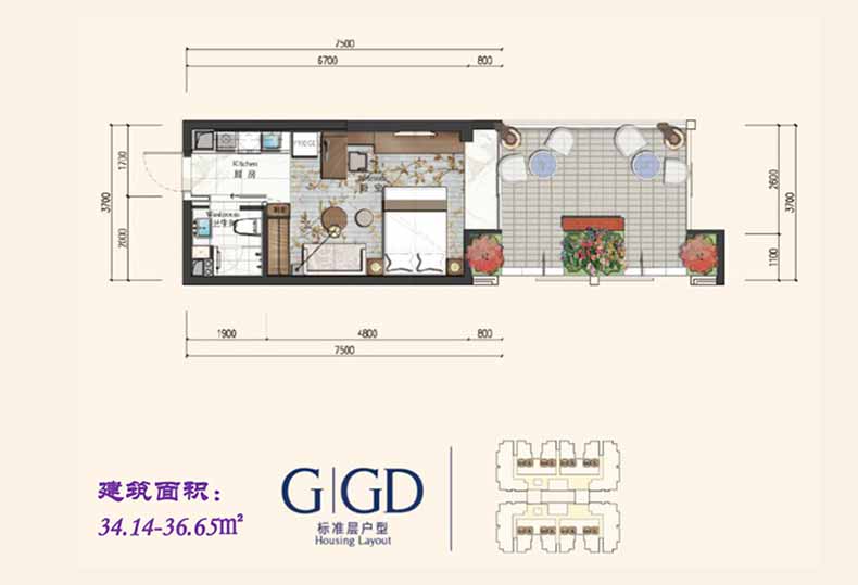 主力户型 :单间 (24m²) 一室一厅 (42m²) 两室一厅 (86m²)