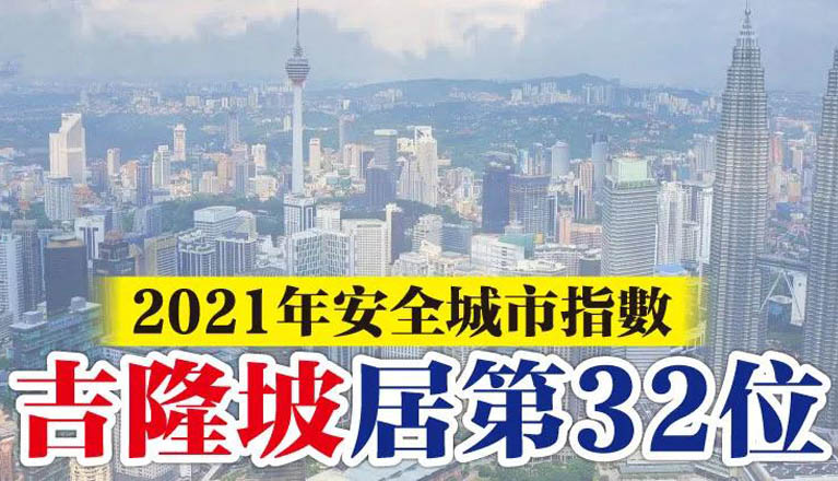 经济学人智库(EIU)公布2021年安全城市指数,马来西亚首都吉隆坡今年以66.6分的整体分数排在第32位,相较2019年的66.3分(第35位),排位稍有上升。