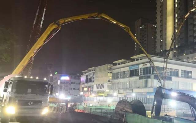 吉隆坡地铁2号线冼都车站负一层板顺利浇筑完成