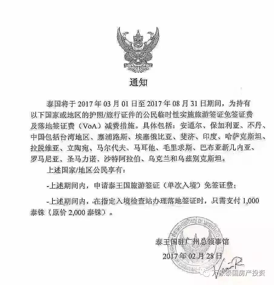 2、落地签办理费用由2000泰铢减至1000泰铢