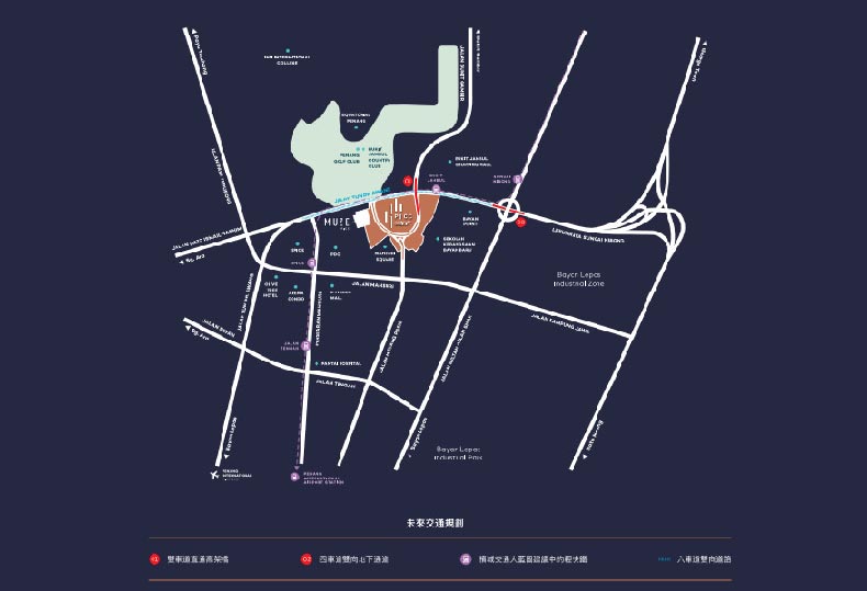● 毗邻机场、自贸区、第一及第二槟威大桥、槟城国际会展中心、武吉占姆高尔夫球场、国际学校等