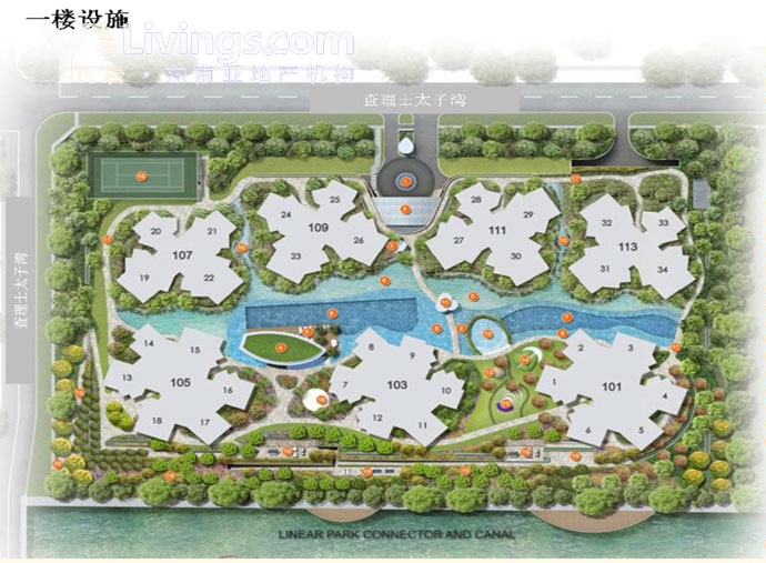 - 泳池区(包括50米泳池、休闲池与儿童嬉戏池)