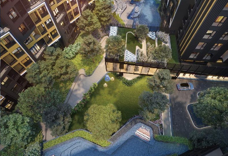 公寓就是位于这个商业中心附近,是泰国少见的大型地块上被创造出的被绿地环绕、配套设施顶级的高端公寓小区。项目由3座8层高的楼体组成,总计590套公寓。项目中央是大型泳池、为儿童而设的嬉水池以及设备齐全的健身中心。