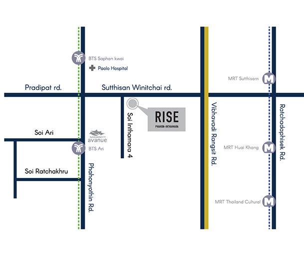 除了靠近轻轨站之外,同时,公寓也十分靠近三条主干高速公路:Uttaradit高速公路,SiriRat 高速公路和Chalerm Mahanakorn高速公路。